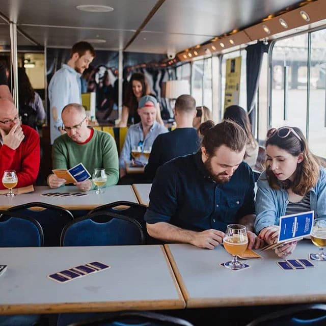 The first five drinks are free: as is the extensive and generous knowledge shared by the brewers. There’s a lot of friendly chat about yeast viability. But this is not just for beard stroking beer drinkers: the atmosphere is welcoming and genial. There’s a proper mix of people too: couples, birthday celebrations, father and son bonding and friends who wanted to do something a bit different on a Saturday afternoon whilst wearing a pirate hat. The boat journey takes you past the most recognisable monuments of London but seen from the river, they show another side to their character. The glimpses of secret timber-framed houses and ghost buildings existing cheek by jowl with spanking new steel and glass architecture is London in a nutshell for me. We basked outside watching the city unfold and drinking excellent beer. - Anna Bywater (April 2019)
