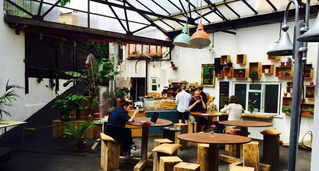 We love the Feest Cafe at the Greenhouse in Newington Green. The food, the music, the festival vibe and the plants hanging from the big glass ceiling make this a hidden gem in London where we love to come and work, but we'd also come here for the food alone.
