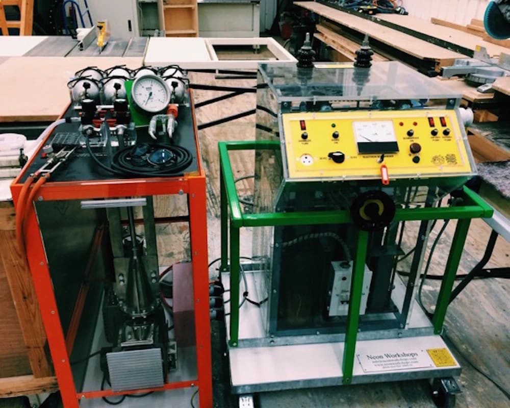 All the equipment was set up and ready to go, along with Richard’s expertly designed Neon making machine (it really was amazing, like something out of a sci-fi movie!) After a quick explanation of all things Neon….we saw the ‘Bombardier’ at work. Neon, Argon and Xenon gas is used…along with several others, to produce different colours and effects.